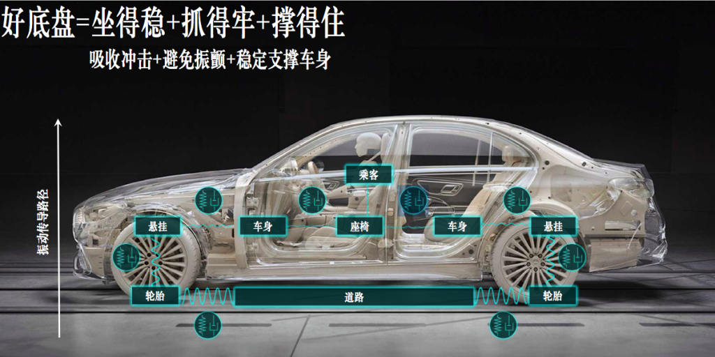 所谓安全感,是指车辆在任何路况下赋予驾驶者的从容自信。掌控感则要求车辆始终保留操作冗余,即使极限状态仍提供渐进反馈;舒适性的核心在于振动传导路径的全局优化——从轮胎相连的初级弹簧阻尼系统到悬架,再到车身,再到座椅,最终到达乘员身体,每个环节均需精准适配。
