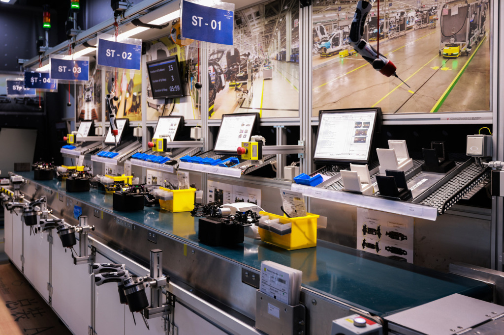 关于奔驰标准,本次科技日不只是简单的“知识灌输”。为了更直观地感受“标准”,奔驰安排我们进入了一条微缩生产线,进行“实操”。